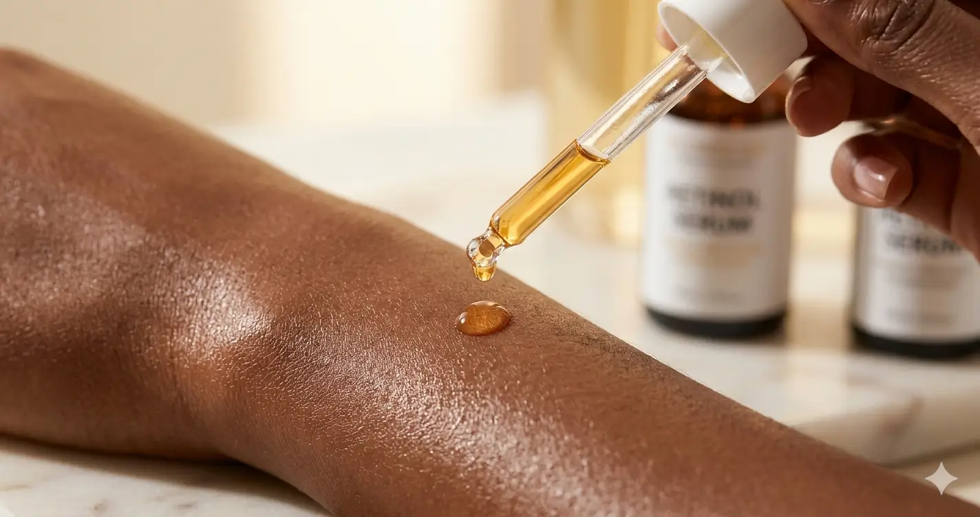 Pour les débutants sur peau noire, le rétinol est le meilleur point d'entrée — assez efficace pour donner des résultats, assez doux pour être toléré avec la bonne méthode.