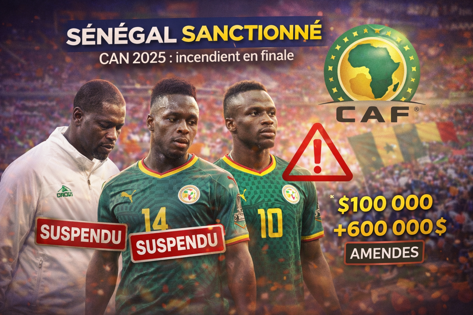 - Fédération sénégalaise : Amendes totalisant plus de 600 000 $ pour la conduite des supporters et du comportement de l'équipe