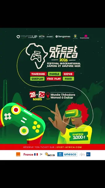 @sen_games Efest Africa revient 🔥 28-29 mars au Musée Théodore Monod 🎮 Prends ton ticket 🎟️ #EfestAfrica #Gaming #Dakar #Senegal #senegalaise_tik_tok🇸🇳