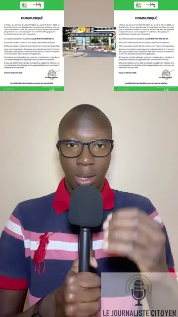 COMMUNIQUÉ A l'issue du Conseil d'Administration du jeudi 19 février 2026, la Direction du Centre des Œuvres Universitaires de Dakar informe que la réouverture des six campus sociaux se fera de manière progressive pour accompagner les activités pédagogiques. Les précisions suivantes sont nécessaires. 1. Le COUD accueille les étudiants ce jeudi 26 février 2026 dès 9 h. 2.Tous les travailleurs sont tenus au respect des horaires de travail. 3. Pour des raisons de sécurité, les pavillons B et F ne sont pas disponibles. 4. Les recommandations des Assises de l'université des 26 et 27 octobre 2023, approuvées par le Conseil d'administration du COUD, en sa séance du 09 mars 2024, seront strictement appliquées. 5.Toutes les activités politiques, toutes les manifestations culturelles à connotation ethnique ou régionaliste sont formellement interdites. 6. Tous les résidents sont invités au respect du règlement intérieur, à la compréhension, à la discipline et à la responsabilité, pour un campus de solidarité et de paix totale. Source (COUD) #tiktoksenegal🇸🇳 #senegal #pourtoi #information #senegalaise_tik_tok🇸🇳pourtoichallenge