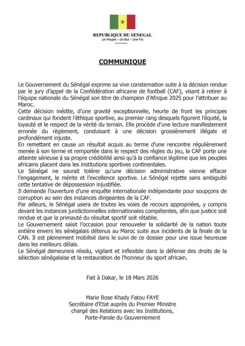 Communiqué du gouvernement sur la décision de la Cour d’appel de la CAF