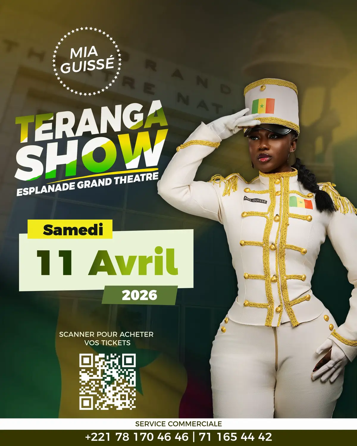 “Je ne viens pas juste chanter. Je viens régner.” Mon Sénégal, mon peuple, ma force… Le 11 Avril 2026, je m’empare de l’Esplanade du Grand Théâtre Doudou Ndiaye Coumba Rose pour vous offrir un show que vous n’avez jamais vécu. Pas un concert. Une histoire. Notre histoire. Ce soir-là, je vous promets que Dakar ne dormira pas. Je vous attends. Soyez là. 🇸🇳🔥 🎟️ TERANGA SHOW — L’événement que le Sénégal n’a jamais vécu. 📍 Esplanade Grand Théâtre | 📅 Samedi 11 Avril 2026 #miaguisse #11 #Terangashow #choix #unique