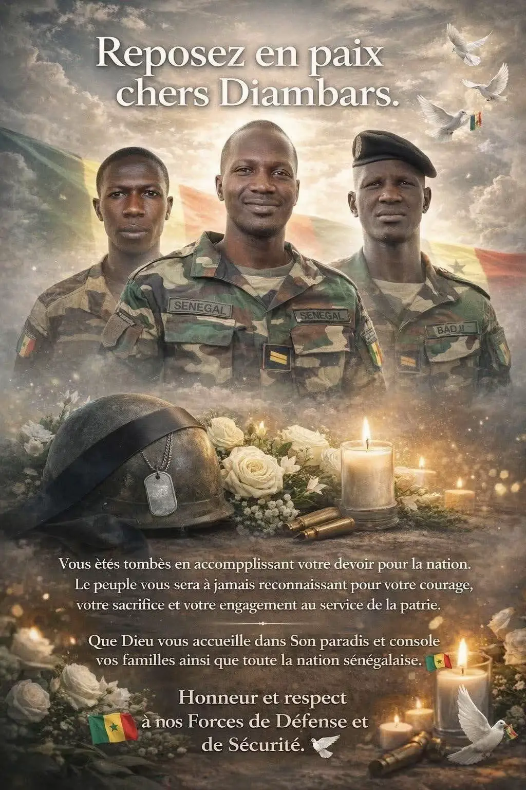 « La Direction de l’information et des relations publiques des Ar-mées a le regret d’annoncer le dé-cès de trois militaires lors d’une exp0osion accidentelle, survenue tôt ce mardi matin 17 mars au Nord Sindian, en Zone militaire n°5. Trois autres ble-ssés ont été évacués et pris en charge. Cet accident malheureux est intervenu dans le cadre des opérations de destruction de champs de chanvre indien au niveau de la frontière avec la Gambie. Lancées depuis plus d’une semaine, elles ont permis de neu-traliser plusieurs individus appartenant aux bandes ar-mées qui s’adonnent à la culture de chanvre et menacent la quiétude des populations. Les unités poursuivent résolument les opérations dans la zone qui ont pour objectifs de traquer et neutraliser les individus armés, de lutter contre la culture du chanvre indien et de sécuriser les populations et leurs biens ». #SinformerSurTikTok #pulsenewsreels