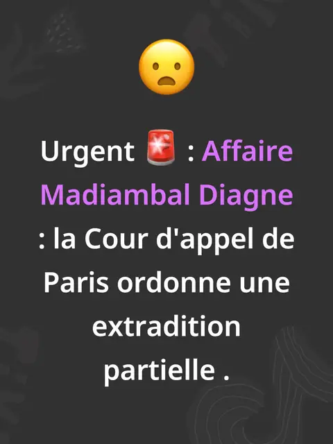 La justice française a franchi une nouvelle étape dans l'affaire Madiambal Diagne, le célèbre journaliste et homme d'affaires sénégalais, visé par une enquête judiciaire pour des faits financiers présumés au Sénégal. La Cour d'appel de Paris a rendu une décision en faveur d'une extradition partielle, sans toutefois statuer définitivement, renvoyant la décision finale à une date ultérieure.#pourtoi #fyp #viral #senegal
