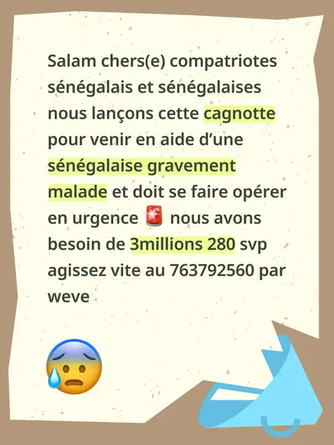 Pour venir en aide d’une femme gravement malade, nous venons au prêt de vous pour vous solliciter une aide financière pour son opération #fyp #senegal #viral #foryoupage❤️❤️ #pourtoi