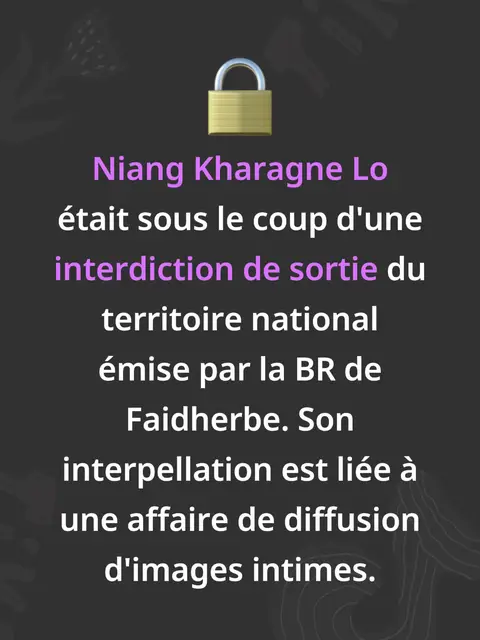 Selon des informations exclusives de Seneweb, le snappeur a été interpellé à l'aéroport international Blaise Diagne de Diass alors qu'il revenait d'un voyage à l'étranger. Niang Kharagne Lo était sous le coup d'une interdiction de sortie du territoire national émise par la BR de Faidherbe. Son interpellation est liée à une affaire de diffusion d'images intimes.#viral #pourtoi #foryoupage❤️❤️