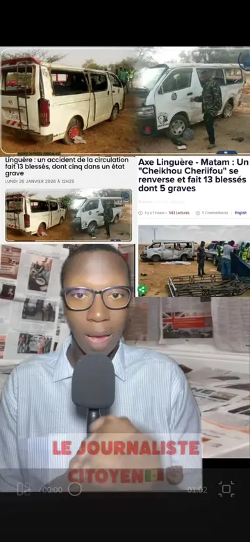 Un accident de la circulation survenu lundi matin à l’entrée de la ville de Linguère (nord-est) a fait treize blessés dont cinq dans un état grave, a-t-on appris de l’adjudant Baba Ngor Diouf, chef de la brigade des sapeurs-pompiers de Linguère. Un véhicule de type minicar communément appelé ”Cheikhou Chérifou” convoyant des voyageurs vers Dakar depuis Matam a dérapé, avant de se renverser à environ un kilomètre de l’entrée de la ville de Linguère, a précisé l’adjudant Diouf. Le chef de la brigade des sapeurs-pompiers de Linguère a indiqué que toutes les victimes – cinq dans un étant grave, huit blessés légers – ont été évacuées vers le centre hospitalier Magatte Lô de Linguère pour leur prise en charge médicale. Source (APS) #tiktoksenegal🇸🇳 #senegal #senegalaise_tik_tok🇸🇳pourtoichallenge #pourtoi #information