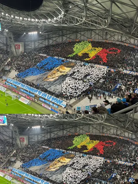 Un tifo aux couleurs du Sénégal déployé au Vélodrome, alors qu’aucun joueur sénégalais n’évolue à l’OM. Preuve que le football dépasse les effectifs : place au respect, à l’histoire et à la passion du jeu.